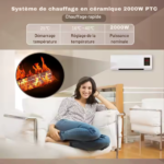 Le climatiseur mural offre une solution tout-en-un, fournissant de la chaleur en hiver et de l’air frais en été, ce qui le rend utilisable tout au long de l’année. Grâce à son taux de conversion électrique élevé, atteignant 98%, il permet un chauffage rapide et efficace tout en réduisant la consommation d’énergie jusqu’à 50%. Avec une puissance de 2000W, cet appareil peut vous faire économiser un degré d’électricité par jour. Son contrôle intelligent à écran tactile, accompagné d’une télécommande pratique, facilite la commutation entre les modes chaud et froid. La plaque chauffante en cristal de silicium assure un chauffage instantané en seulement trois secondes, tandis que la bonne dissipation thermique et la circulation d’air améliorée garantissent une répartition uniforme de la température dans toute la pièce. De plus, la technologie de température constante assure un confort naturel et économe en énergie, offrant une chaleur homogène et agréable pour toute la famille.