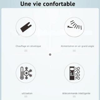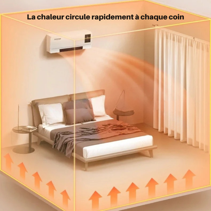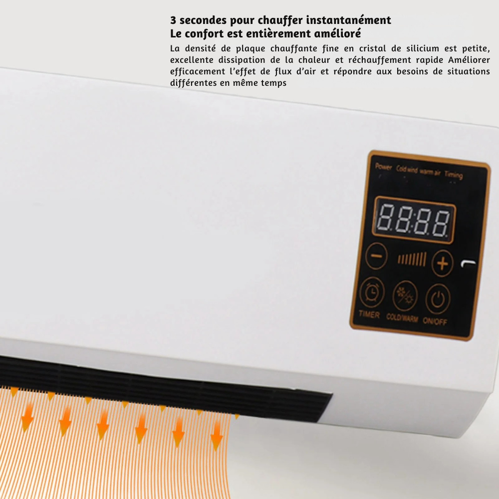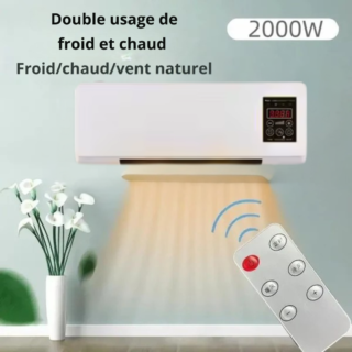 Le climatiseur mural offre une solution tout-en-un, fournissant de la chaleur en hiver et de l’air frais en été, ce qui le rend utilisable tout au long de l’année. Grâce à son taux de conversion électrique élevé, atteignant 98%, il permet un chauffage rapide et efficace tout en réduisant la consommation d’énergie jusqu’à 50%. Avec une puissance de 2000W, cet appareil peut vous faire économiser un degré d’électricité par jour. Son contrôle intelligent à écran tactile, accompagné d’une télécommande pratique, facilite la commutation entre les modes chaud et froid. La plaque chauffante en cristal de silicium assure un chauffage instantané en seulement trois secondes, tandis que la bonne dissipation thermique et la circulation d’air améliorée garantissent une répartition uniforme de la température dans toute la pièce. De plus, la technologie de température constante assure un confort naturel et économe en énergie, offrant une chaleur homogène et agréable pour toute la famille.