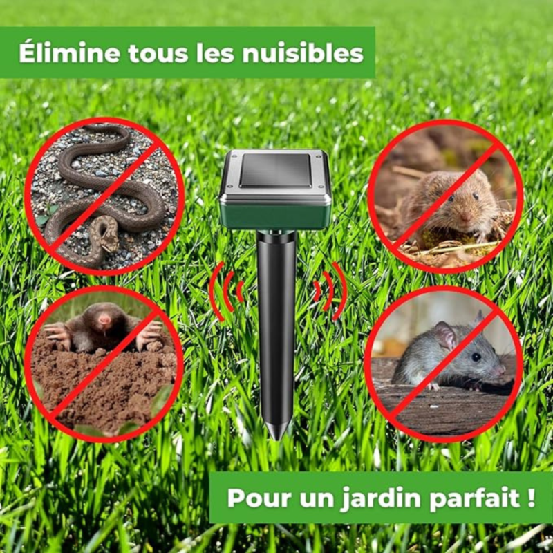 Le répulsif  anti-taupes, fabriqué en ABS et PVC de qualité supérieure, est étanche, durable et respectueux de l’environnement. Il fonctionne grâce à un panneau solaire intégré, offrant une protection efficace sans coûts supplémentaires. Facile à installer, il s’intègre discrètement dans votre jardin tout en étant inoffensif pour les humains et les animaux. Idéal pour pelouses, parcs, fermes et jardins, il offre une solution fiable contre les taupes et les rongeurs.