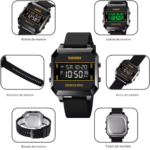 Cette montre au design raffiné et moderne, avec son boîtier carré distinctif, combine élégance et technologies avancées. Son mouvement numérique 16 nanomètres assure une précision remarquable tout en optimisant la consommation d’énergie. Les nombreuses fonctionnalités pratiques, telles que le double fuseau horaire, le chronographe, le compte à rebours, l’alarme, l’affichage de la date, du jour de la semaine, ainsi que l’option de rétroéclairage, offrent une utilisation optimale dans diverses situations. Le rétroéclairage permet une lecture facile même en soirée. Son boîtier en acier inoxydable plaqué sous vide noir garantit une grande durabilité, avec une couleur qui résiste à l’usure du temps. Le bracelet en silicone, à la fois doux et respectueux de l’environnement, offre un confort exceptionnel et une sécurité accrue, tout en étant sans odeur. Élégante et fonctionnelle, cette montre est le cadeau parfait pour vos proches, adaptée à toutes les occasions et apportant une touche de sophistication à chaque moment de la journée.