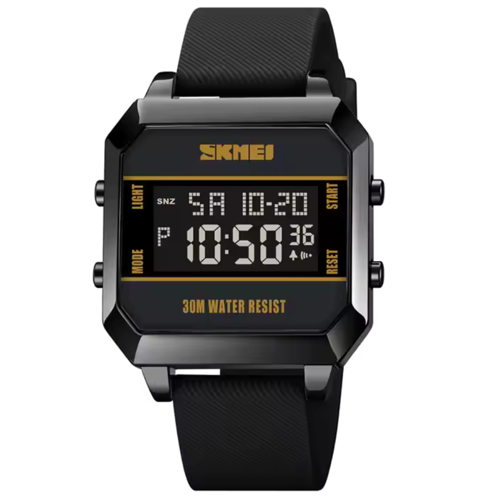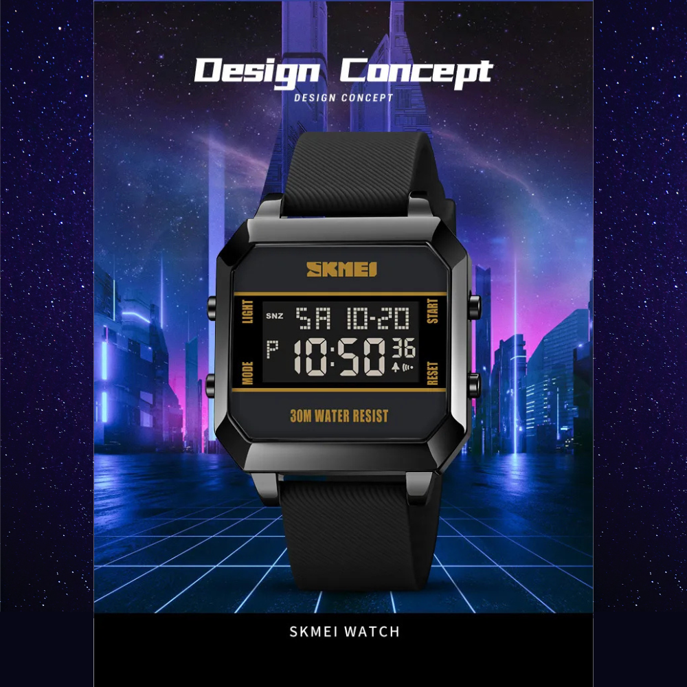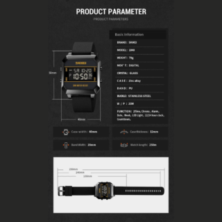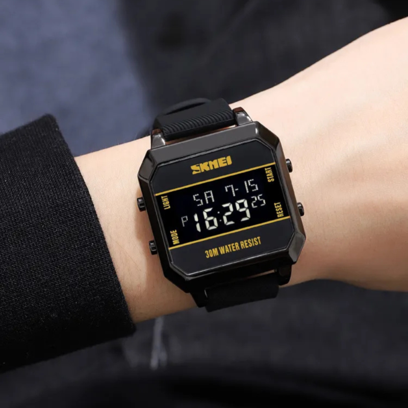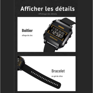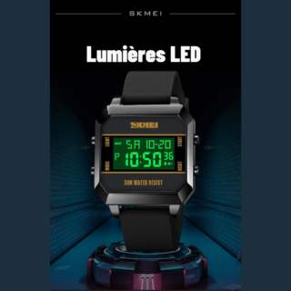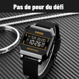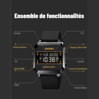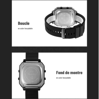 Cette montre au design raffiné et moderne, avec son boîtier carré distinctif, combine élégance et technologies avancées. Son mouvement numérique 16 nanomètres assure une précision remarquable tout en optimisant la consommation d’énergie. Les nombreuses fonctionnalités pratiques, telles que le double fuseau horaire, le chronographe, le compte à rebours, l’alarme, l’affichage de la date, du jour de la semaine, ainsi que l’option de rétroéclairage, offrent une utilisation optimale dans diverses situations. Le rétroéclairage permet une lecture facile même en soirée. Son boîtier en acier inoxydable plaqué sous vide noir garantit une grande durabilité, avec une couleur qui résiste à l’usure du temps. Le bracelet en silicone, à la fois doux et respectueux de l’environnement, offre un confort exceptionnel et une sécurité accrue, tout en étant sans odeur. Élégante et fonctionnelle, cette montre est le cadeau parfait pour vos proches, adaptée à toutes les occasions et apportant une touche de sophistication à chaque moment de la journée.
